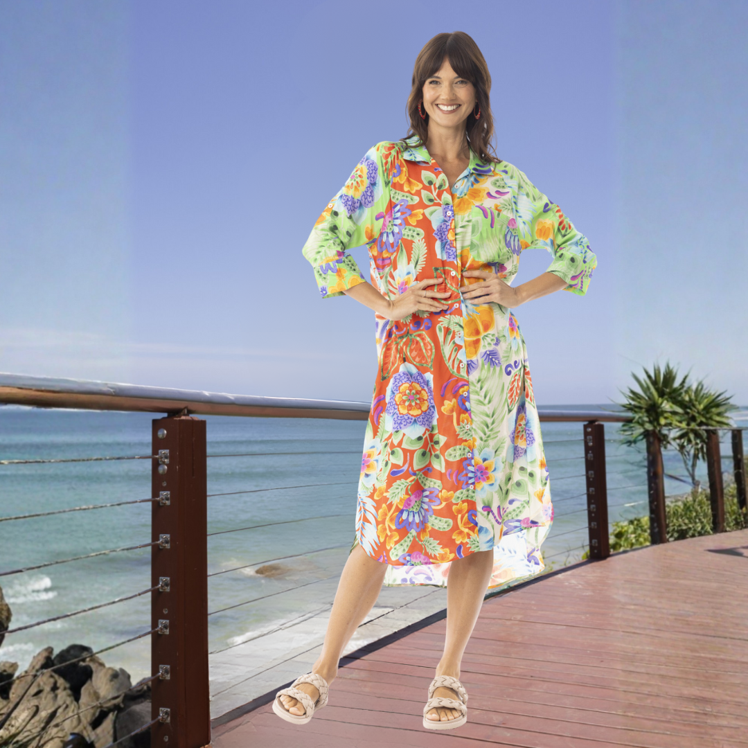 Adorn your soul with the captivating Sofia Collar Buttonthrough Dress. With its light playful floral colours, it is crafted from soft rayon, this versatile piece features fun prints, vibrant colour, a crisp collar, full-length button placket, and practical side pockets. Perfect for any occasion, it transitions seamlessly from day to evening, ensuring you look effortlessly chic wherever you go.