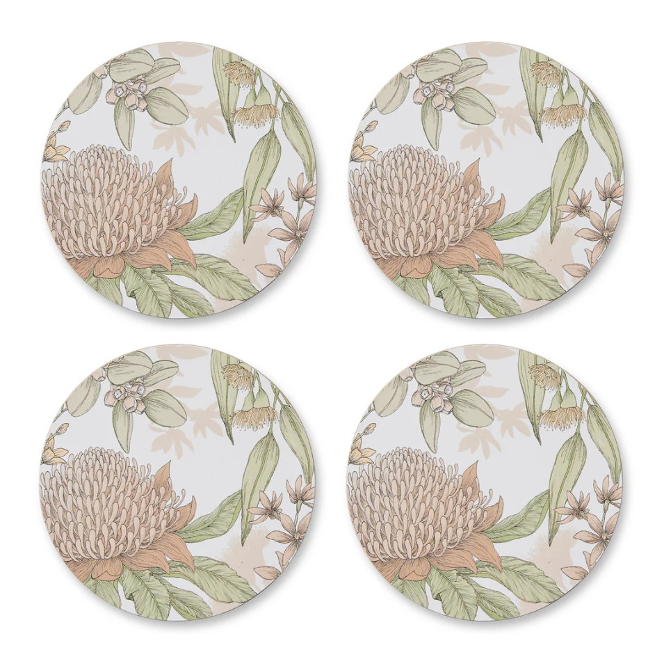 The Glenelg Neutral Round Coaster Set combines style and practicality for your tabletop. Featuring our signature neutral botanical print on a durable hard surface with a cork backing, these coasters protect surfaces while adding an elegant, organic touch to your setting.