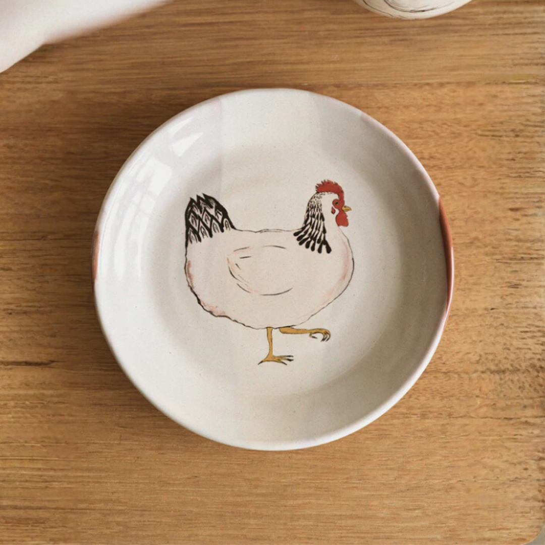 A delightful collaboration with the talented Emogen Clark. Her love of chickens and the joy they bring is something to be shared and celebrated with our pottery.
