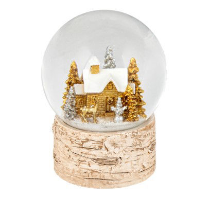 RESIN SNOW GLOBE - GOLD BIRCH HOUSE IN TREES | SMALL 14CM